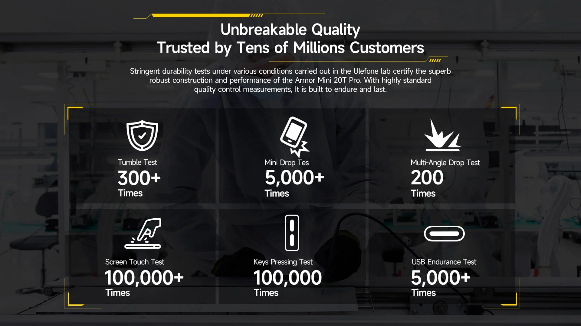 - The data on the page are theoretical values from Ulefone lab based on specific test environment (see details at specific description). In actual use, there may be slight differences due to product differences, software versions, use conditions and environmental factors, so please refer to the actual situation as final.