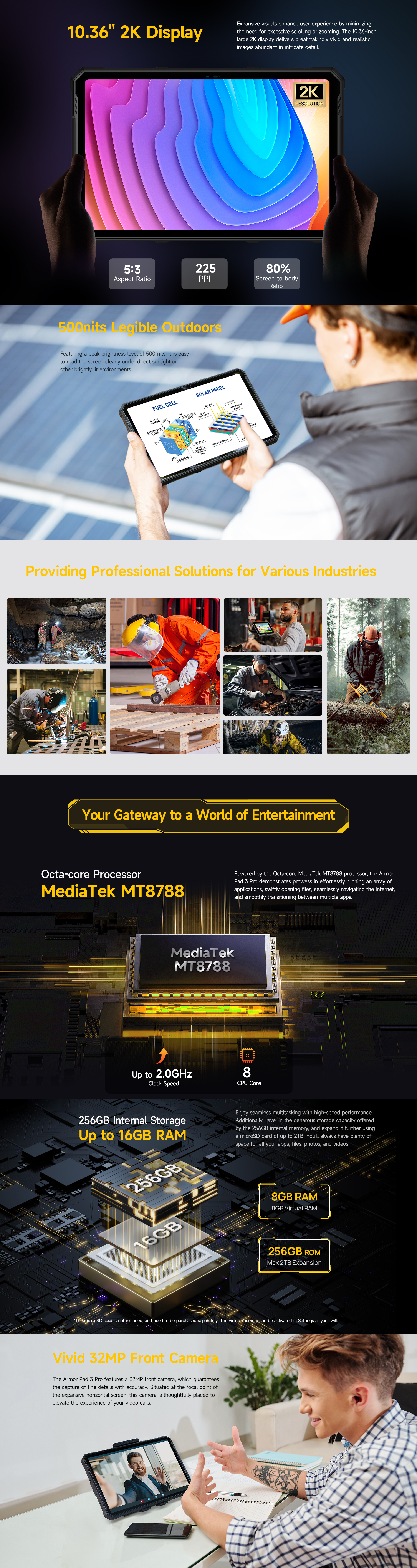 7. The actual available RAM and storage are less than the listed total capacity due to the occupied storage of the operating system and software pre-installed in the device. The maximum 8GB of virtual RAM can be activated in Settings at your will.