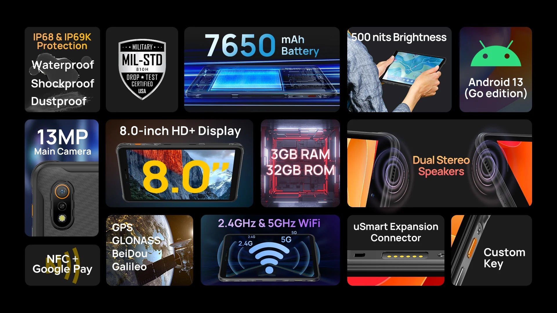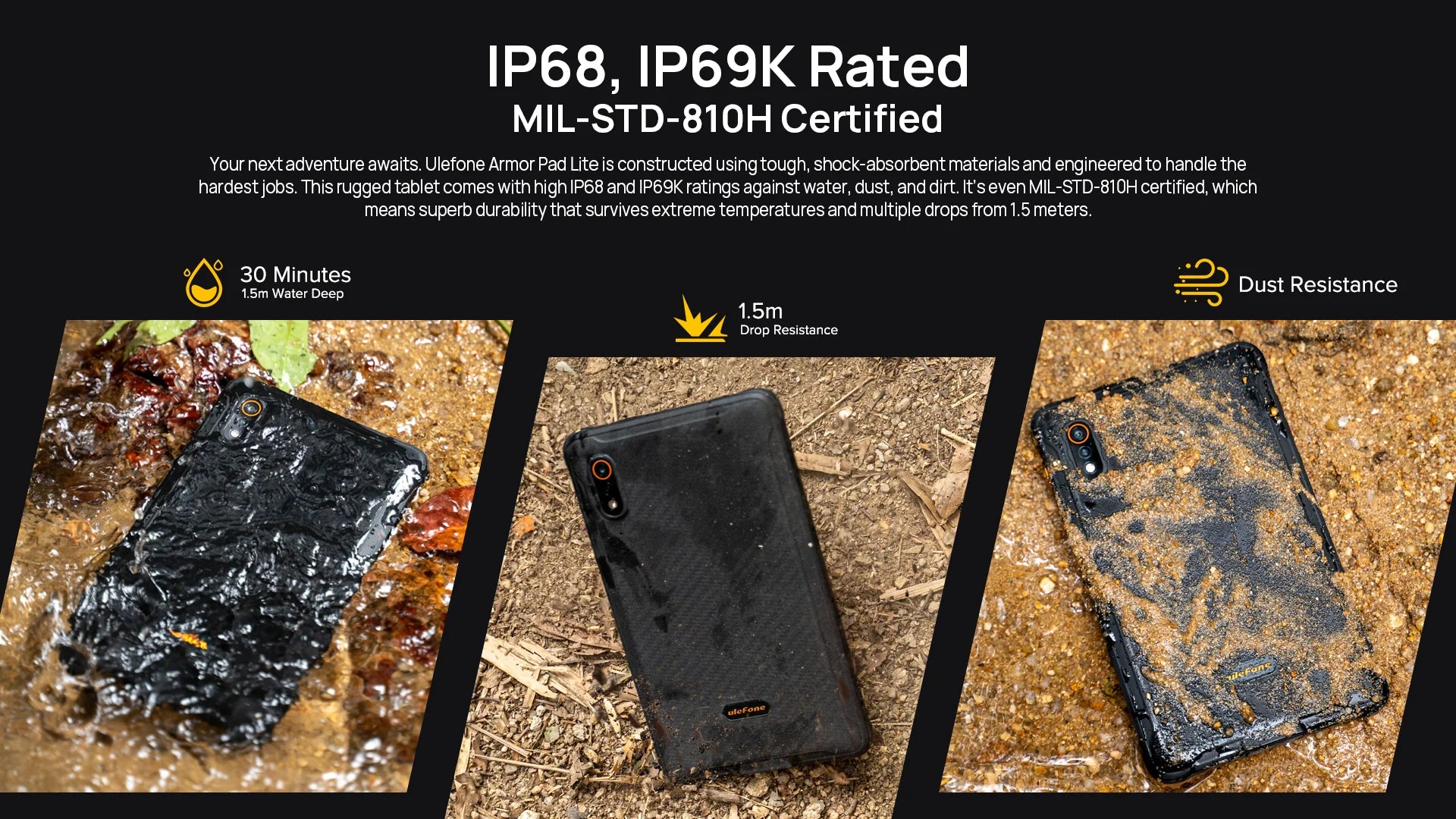 8. Armor Pad Lite does not support the cellular networks, nor does it have a microSD card slot.