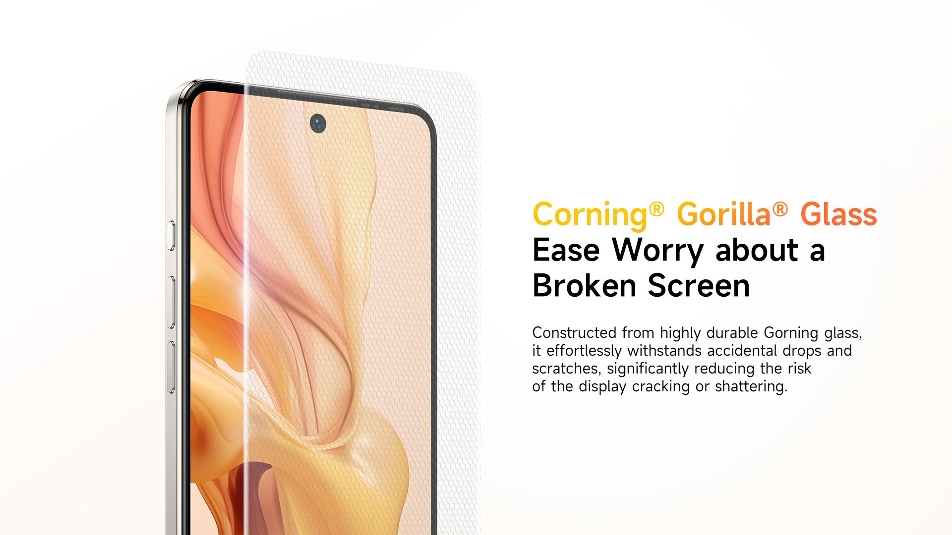 Constructed from highly durable Corning glass, it effortlessly withstands accidental drops and scratches, significantly reducing the risk of the display cracking or shattering
