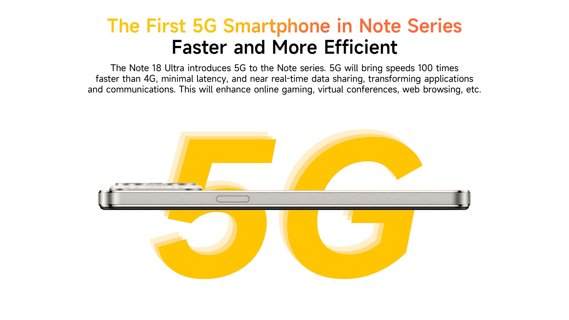 The Note 18 Ultra introduces 5G to the Note series. 5G will bring speeds 100 times faster than 4G, minimal latency, 1 and near real-time data sharing, transforming applications and communications. This will enhance online gaming, virtual conferences, web browsing, etc